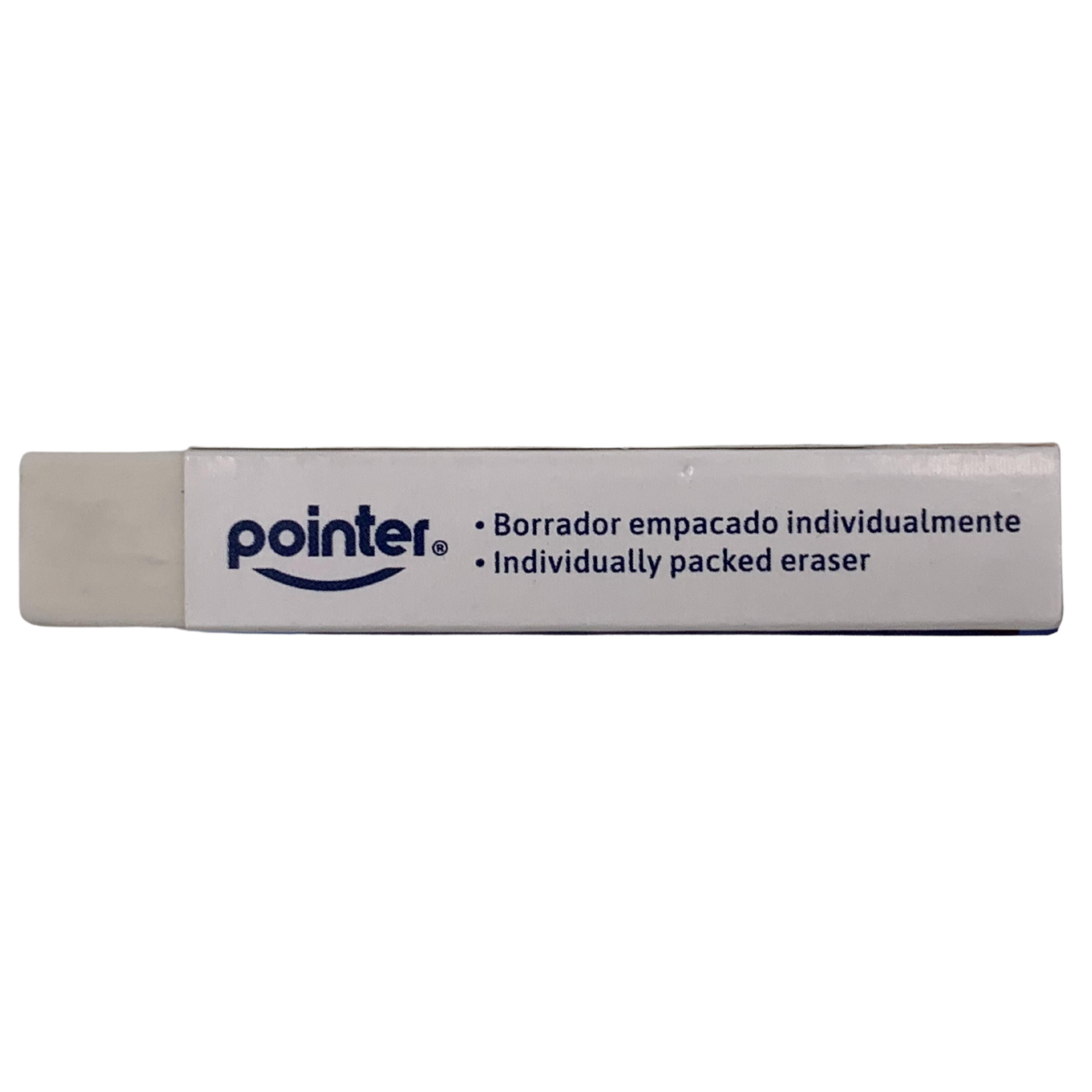 Borrador Pointer de 6 x 2 x 1 cm, ideal para eliminar trazos de lápiz con precisión y sin dañar el papel.